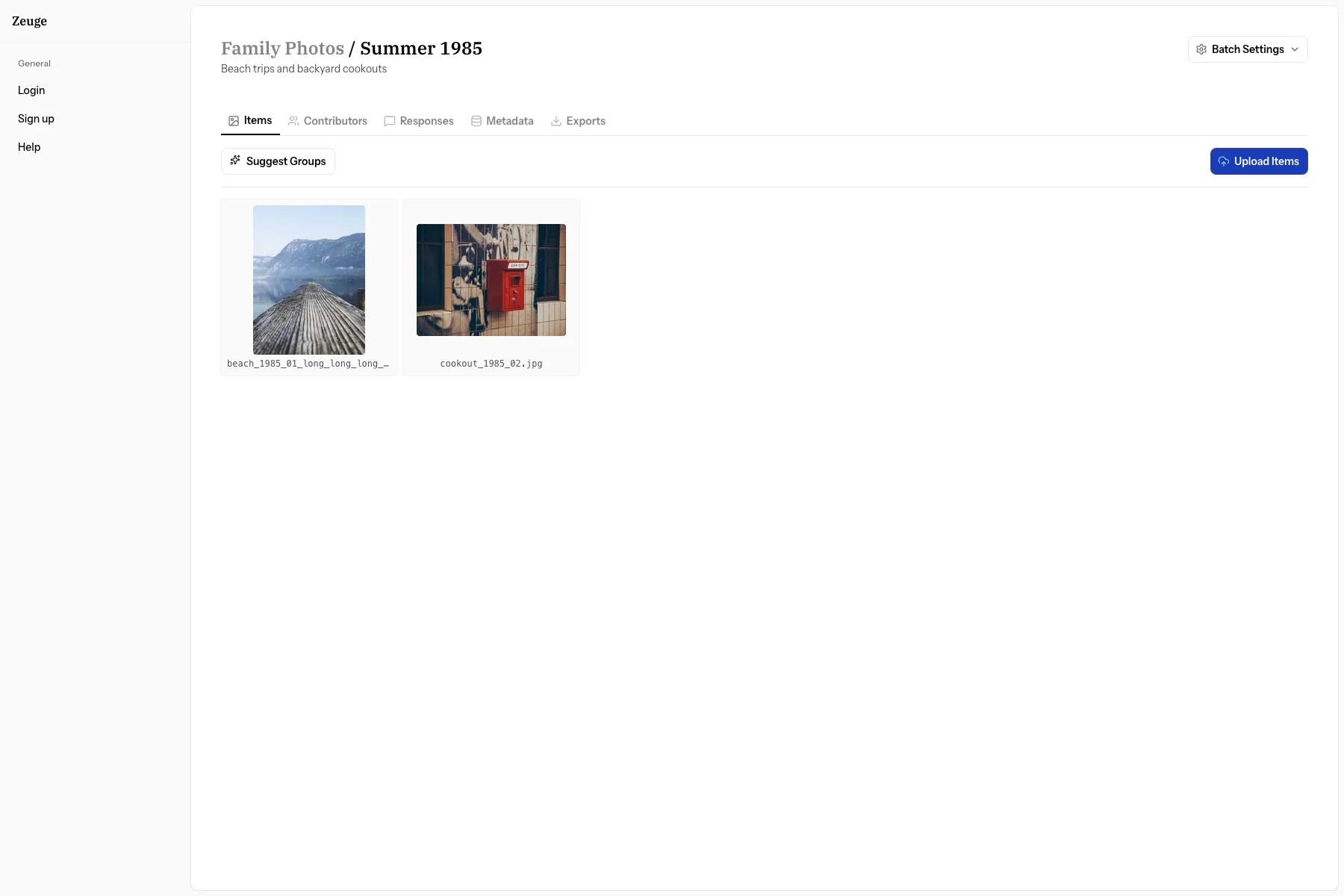 Audience: Archivists — people uploading photos and documents into a Zeuge batch.